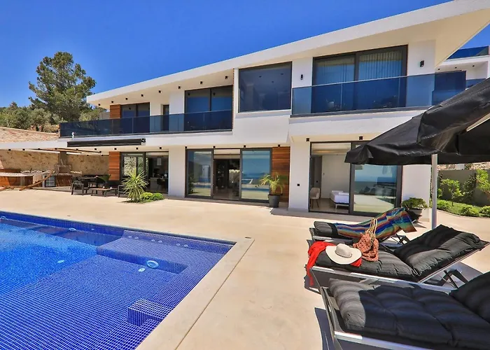 The 4-bedroom Villa Nymphe - Kalkan Villa is located around 25 minutes' walk from Kalkan Public Beach and provides a Jacuzzi. The villa includes parking and a terrace with views of the pool.